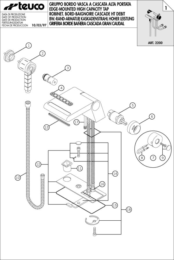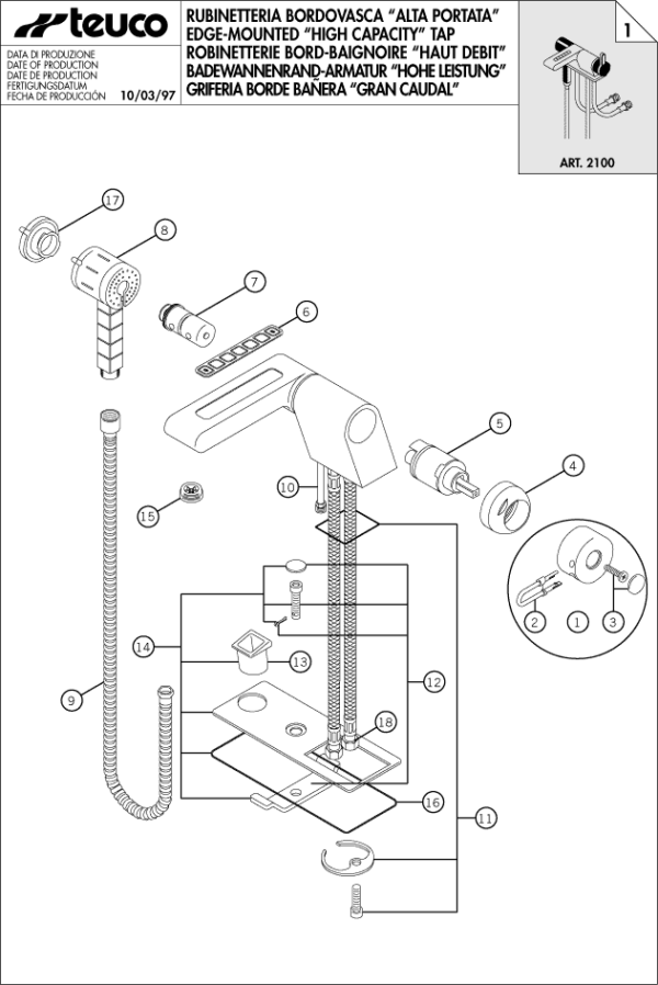 Maniglia miscelatore bordo vasca Teuco serie quadra